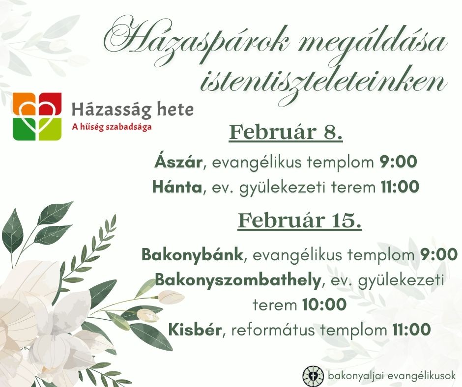 Evangélikus Istentisztelet keretein belül házaspárok megáldása