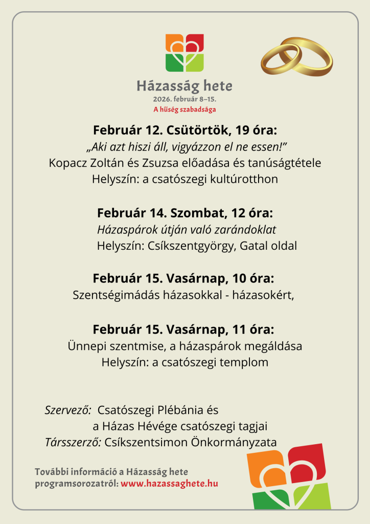 Szervező: Csatószegi plébánia és a Házas Hévége csatószegi tagjai