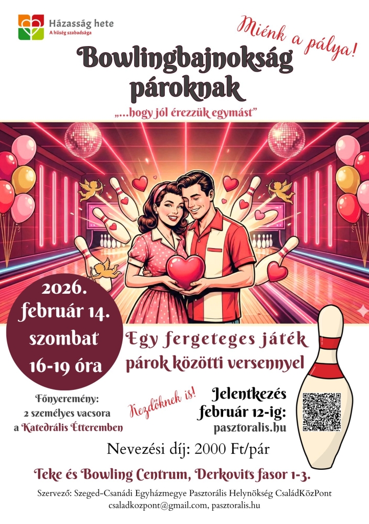 Egy fergeteges, szórakoztató versenyre hívjuk a játékos kedvű párokat. Kezdőknek is bátran ajánljuk! Az a pár, amelyik a bajnokság összesítésében a legjobb eredményt éri el, egy 2 főre szóló, 20.000 Ft értékű vacsorakupont nyer a Katedrális Étterembe.