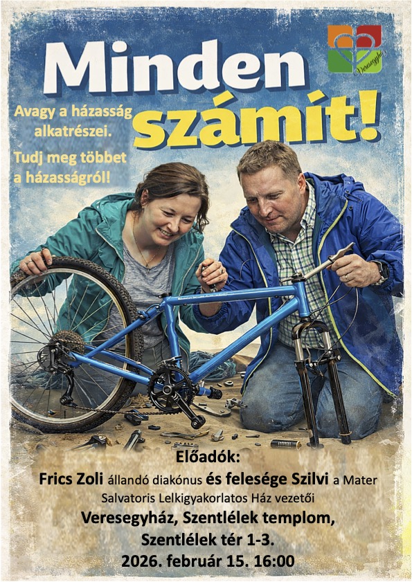 Ne egy órás előadásra számítsatok: kaptok majd páros feladatokat, sőt, egy kis versenyhelyzetre is felkészülhettek, ahol házaspáros lelkigyakorlatot nyerhettek!
